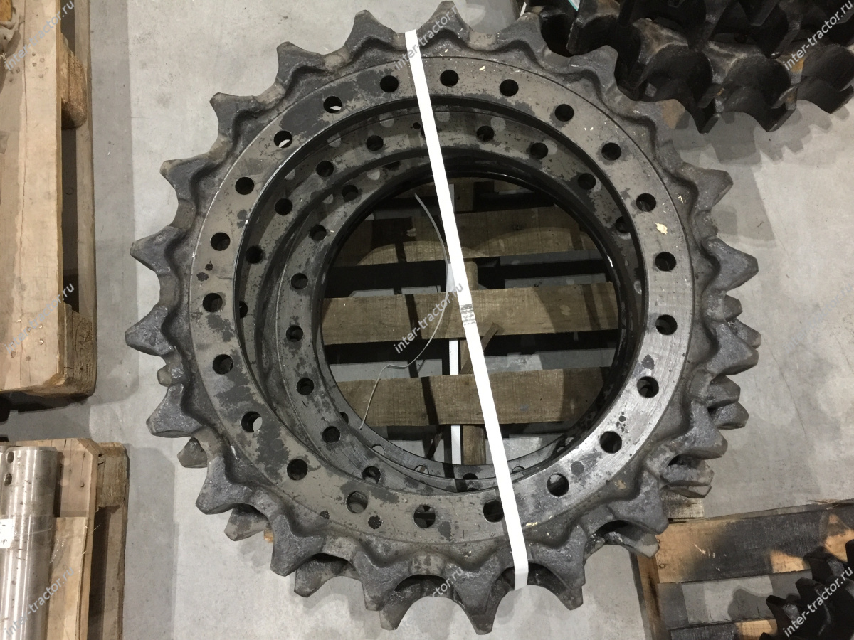 1033163:Звездочка является ключевым элементом ходовой части — перематывает гусеницу, преобразуя свое вращение в поступательное движение механизма. Деталь представляет собой колесо с зубьями, которое цепляет гребни гусеничной ленты и проворачивает ее. Крепится гайками и шпильками к фланцу ведомого вала конечной передачи. Купить запчасть можно в нашей компании в Нягани или заказать с доставкой в другой город РФ. У нас выгодные цены, квалифицированные сотрудники помогут с выбором и оформлением заказа.